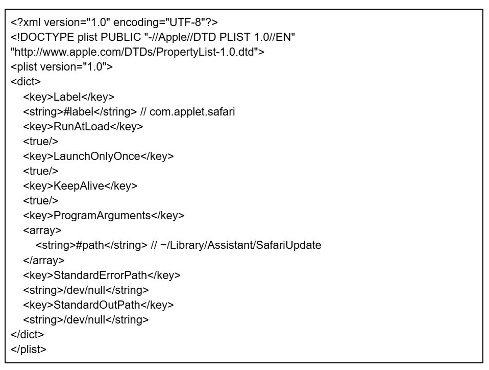 #pathis replaced with the path to the copiedwatchdog#labelis replaced withcom.applet.safarito masquerade as a legitimate Safari-related component